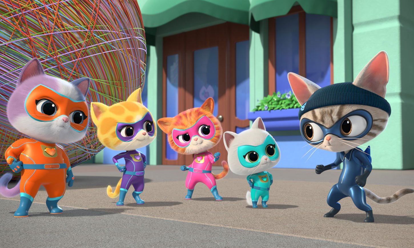 『スーパーキティ』は、ディズニー・チャンネルで放送されているアニメシリーズで、物語の舞台は架空の都市キティデールで、ジニー、スパークス、バディ、ビッツィの4匹の子猫たちが主人公です。普段はただのかわいい子猫としてネコカフェのような場所で過ごしていますが、街でトラブルが発生すると、スーパーヒーロー「スーパーキティ」に変身し、特別な能力やツールを駆使して問題を解決します。